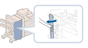 When closing the front cover of the finisher, be careful not to get your fingers caught, as this may result in personal injury.