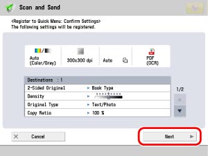 For more information on the confirmation dialog box for the settings, see "Sending a Document Using the Quick Menu."