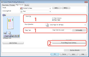 When you want to print on a specific type of paper, specify the paper source containing the paper, or the paper type.