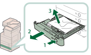 1. Press the open button of the paper drawer that is feeding the paper. |