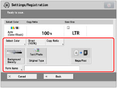 You can register image forms and superimpose them on an output using the Superimpose Image mode in the Copy and Access Stored Files functions. For more information on the Superimpose Image mode, see