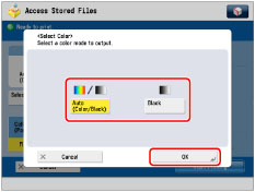 When printing CMYK files stored in mail boxes, only [Auto (Color/Black)] can be selected. (To print full colour CMYK files, only [Auto (Color/Black)] can be specified. To print black CMYK files, [Black] can also be specified.)