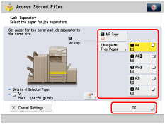 If you want to set both Add Cover and Job Separator, select the same paper size.