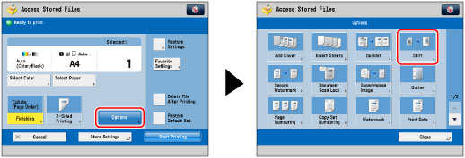 If you use the Shift mode, the original image may be partially cut off on the print, depending on the size of the selected file, the size of the print paper, and the amount of shift specified.