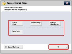 You cannot specify Adjust One-Touch Color mode settings when you print a CMYK format file stored in a mail box.