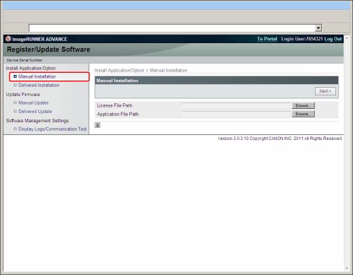 on the control panel of the machine.It is recommended that you use the Remote UI if you want to install multiple system options.
