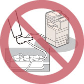 If excessive stress is applied to the connection part of the power cord, it may damage the power cord or the wires inside the machine may disconnect. This could result in a fire. Avoid the following situations: