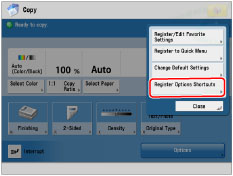 You can create shortcuts to frequently used functions in [Options]. You can also create shortcuts to [Favorite Settings]. For information on favorite settings, see