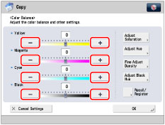 To adjust the hue level of each colour, press [More Red], [More Green], [More Yellow], [More Cyan], [More Blue], or [More Magenta] for each colour.