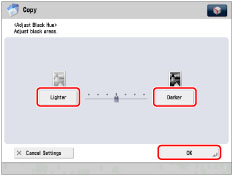 Press [Lighter] or [Darker] to adjust the hue of the black colour → press [OK].
