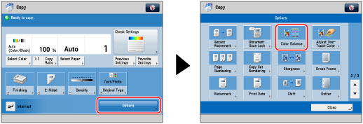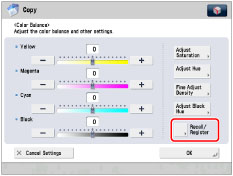 If you select a key that does not have colour balance settings stored in it, [OK] is grayed out and cannot be pressed. You can select another key that has colour balance settings stored in it, or press [Cancel].