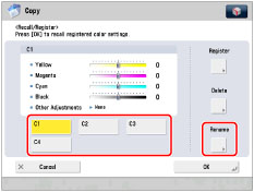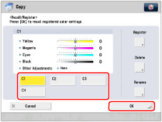 Select a key ([C1] to [C4]) for storing the colour balance settings → press [Register].