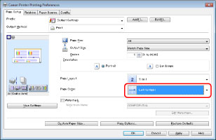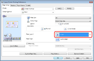 If you cannot select the options for [Page Layout], display the [Device Settings] tab, and then select [Auto] or [Enabled] from [Spooling at Host]. For instructions on how to display the [Device Settings] tab, see "Setting the Printer Options."
