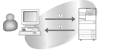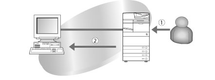 This operation is similar to the "Scan and Send" functions. You can scan originals set in the feeder or on the platen glass of the machine, and send them to a computer which is connected to the machine via network. You can easily select destinations as computers, which are in the same domain and are equipped with the standard driver of the operating system, are displayed automatically.