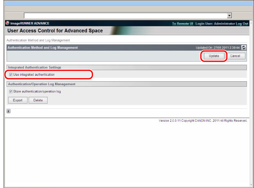 If the login name and password for accessing the machine are the same as those that registered in [User Access Control for Advanced Space]