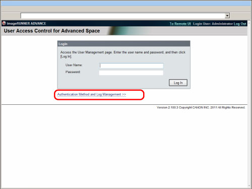 You can also log in by entering the URL of [User Access Control for Advanced Space] in the address bar, as indicated below. (Case sensitive.)