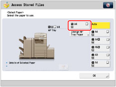 The following paper sizes can be used only when printing the stored file in a mail box: 305 mm x 457 mm, 320 mm x 450 mm (SRA3), or custom size.