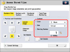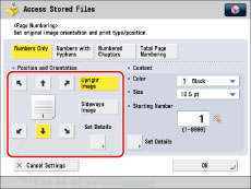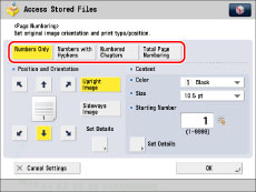 If you use [Page Numbering] with [Add Cover], [Insert Sheets], or [Job Separator], numbers will not be printed on the inserted pages.