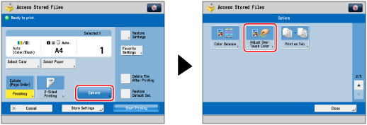 You cannot specify Adjust One-Touch Color mode settings when you print a CMYK format file stored in a mail box.