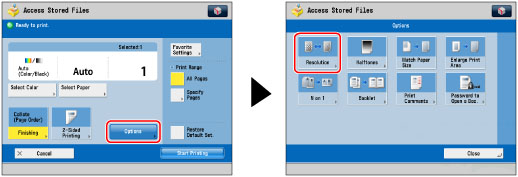 This mode is only available for printing files stored in the Advanced Space, the Advanced Space of another imageRUNNER ADVANCE machine on the network, or memory media.