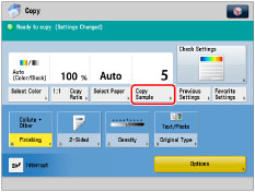 [Copy Sample] appears only if you set to make multiple copies of your original in [Collate (Page Order)], [Offset], [Rotate 90 Degrees], [Staple], [Add Cover], [Insert Sheets], or [Transparency Cover Sheets].