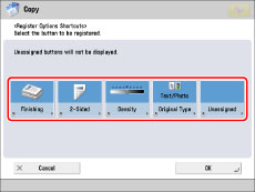 You can create shortcuts to frequently used functions in [Options]. You can also create shortcuts to [Favorite Settings]. For information on favorite settings, see "Storing, Recalling, and Deleting Favorite Settings (Favorite Settings)." These shortcuts then appear on the Basic Features screens.