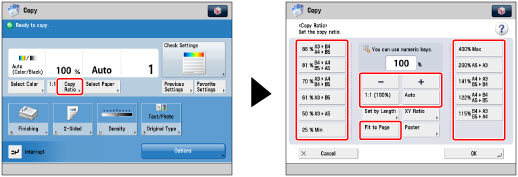 If you set [Auto], you have to select a paper size manually. If you do not select a paper size, the copy ratio is automatically set to match the size of paper loaded in paper drawer 1.