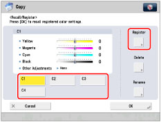 Select a key ([C1] to [C4]) for storing the colour balance settings → press [Register].