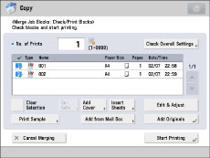 To cancel the Merge Job Blocks mode with other copy modes, press [Cancel Merging].