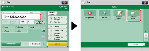 Specify the destination → press [Options] → [Job Done Notice].