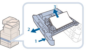1. Make sure that the paper size setting of the paper drawer matches the size of the paper to load in the paper drawer. |