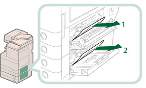 1. Press the open button of the paper drawer that is feeding the paper. |