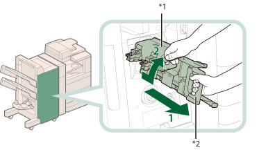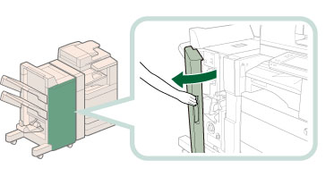 When returning the saddle stitcher unit to its original position, be careful not to get your fingers caught, as this may result in personal injury.