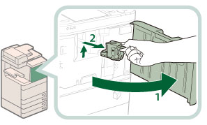 1. Gently push the staple case back into the finisher and push down firmly until it is securely in place. |