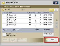 You can scan and store up to 999 pages at one time. If two-sided originals are scanned using the feeder, you can store up to 1,000 pages. Once the maximum number of originals you can scan is reached, a message asking whether to store appears.