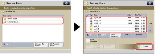 This mode is only available for storing files in the Advanced Space, the Advanced Space of another imageRUNNER ADVANCE machine on the network, or memory media.