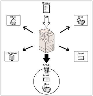 You must specify network settings to be able to send scanned documents to an e-mail address, I-fax address, or file server. (See "Common Communication Settings for E-Mail/I-Fax.")
