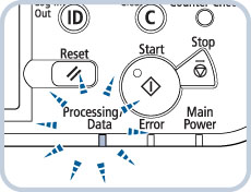 The Processing/Data indicator flashes or maintains a steady green light even when the machine enters the Sleep mode.