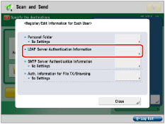 Uses the authentication information set in [Register LDAP Server]. (See "Registering an LDAP Server.") Further settings are not required for every user.
