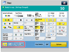 When [Copy Screen Display Settings] is set to [Express Copy], you can register the shortcut buttons displayed on the Copy screen. (See "Switching the Copy Basic Features Screen.")