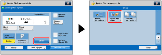 Les réglages du mode Ajuster Régl. couleur sont actuellement des réglages prédéfinis de balance des couleurs. Par conséquent, si les réglages du mode Ajuster Régl. couleur sont modifiés, tout réglage apporté à la balance des couleurs est aussi changé.
