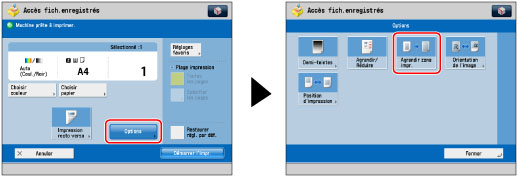 Appuyer sur [Options] → [Agrandir zone impr.] → [Fermer].