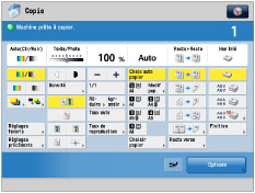 Appuyer sur cette option pour sélectionner un mode [Options]. [Finition], [Recto verso], [Densité] et [Type d'original] sont activés par défaut. |
