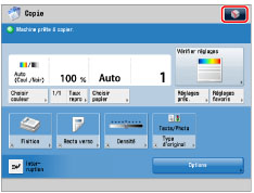 Les réglages peuvent être rappelés sans afficher un écran de confirmation depuis l'écran des fonctions de base du mode Copie.