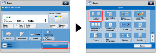 Il est impossible de modifier la densité pendant la copie si l'option [Filigrane sécurisé] est activée.