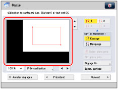 Pour utiliser Sélection de surfaces (Encadrage) en mode Répétition d'images, spécifier en premier lieu ce dernier puis sélectionner la surface voulue. Une seule surface est sélectionnable.
