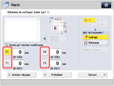 Lors de la sélection d'une surface avec le styleur, l'image de sortie peut ne pas être exactement la zone sélectionnée. Si c'est le cas, saisir les valeurs avec les touches numériques.