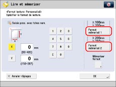 Appuyer sur [Perso.] → [Format mémorisé 1] ou [Format mémorisé 2].