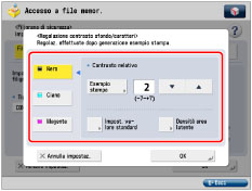 L'area riquadrata nella stampa di esempio è la stampa esemplificativa del valore di contrasto relativo impostato correntemente.