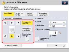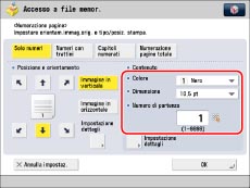 Se si imposta per due tra i modi [Numerazione serie], [Filigrana] o [Stampa data] la stampa alla stessa posizione, viene visualizzato un messaggio che chiede conferma quando si preme